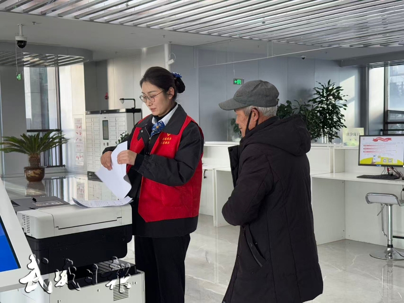 市政府政务服务中心工作人员正在帮助市民打印文件