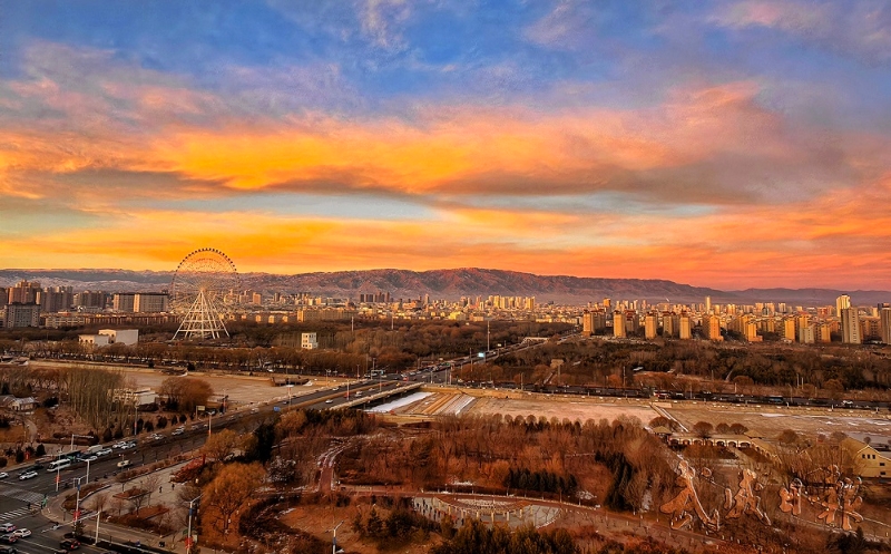 漫天朝霞勾勒出一幅壮美的武威晨景图