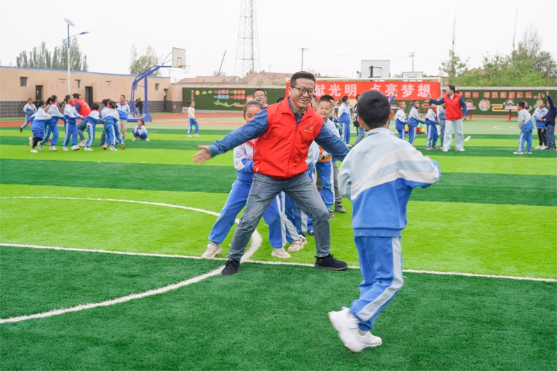 5月29日,在“六一”国际儿童节来临之际,国网武威供电公司组织青年志愿者前往古浪县土门镇中心小学,开展以“奉献光明 点亮梦想”为主题的志愿服务活动,以青春之光,点亮童心梦想,让孩子们感受到来自社会的温暖和关爱。 (记者 包雨纯 吴积文)
