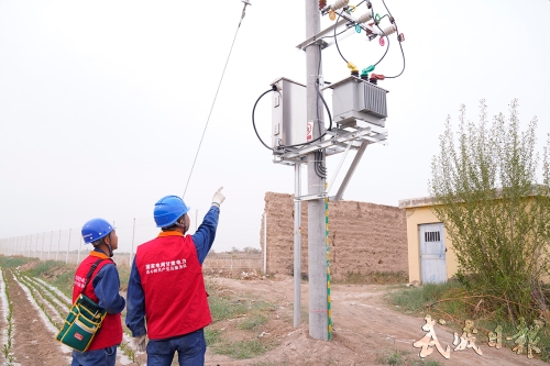 6月16日,工作人员对设施农业滴灌设备进行安全检查。夏灌高峰将至,为确保用电设备正常运行,国网武威市凉州区供电公司长城供电所组织党员服务队,对所辖高低压线路、台区和农灌用电设备进行安全巡视检查。 (记者庄智)