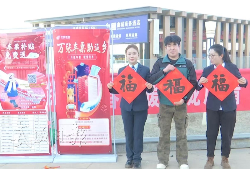 中国邮政武威分公司在武威东站候车厅支起“春运暖心摊”