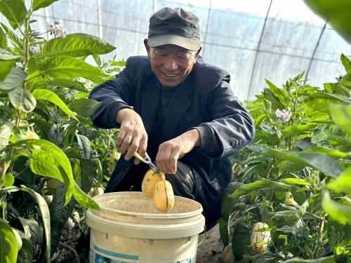 民勤县大滩镇红沟寺村村民正在采摘人参果