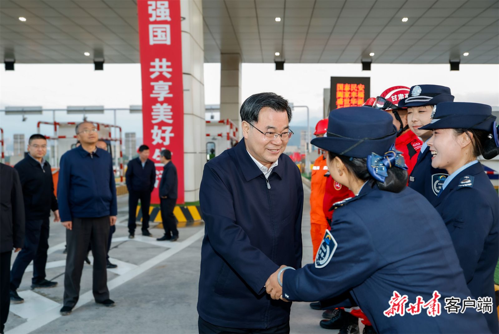 调研中,胡昌升沿途检查节日期间道路交通安全工作,在G22青兰高速兰州东收费站看望慰问坚守在一线的工作人员,向他们致以节日的问候。他强调,要科学研判假期客货流量形势,优化指挥调度,加强管控疏导,全力以赴保通保畅保安全。要加强重要路段路况巡查,全面排查整治道路交通安全隐患,从严整治疲劳驾驶和超载、超速、超员行为,全力守护人民群众安全出行。