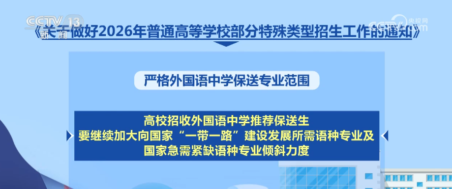 央视网消息:日前,教育部印发《通知》,部署做好2026年普通高校部分特殊类型招生工作。普通高校特殊类型招生主要包括艺术类专业招生、高水平运动队招生、保送生、综合评价招生4类。
