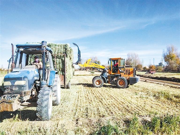 田间地头的机械化秸秆离田作业。