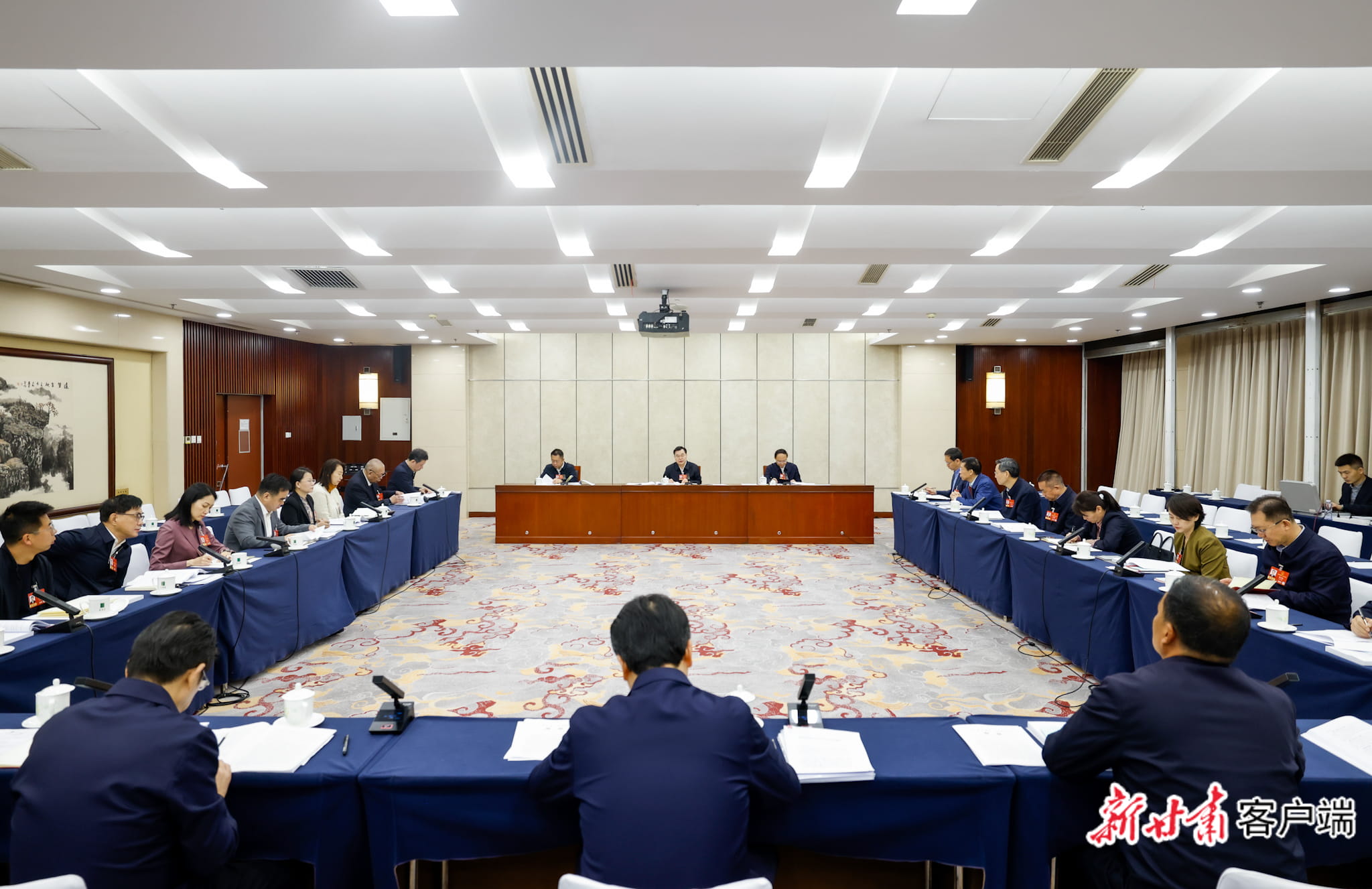 全国人大代表、省委书记、省人大常委会主任胡昌升,全国人大代表、省委副书记、省长任振鹤,全国人大代表王可、嘉木样·洛桑久美·图丹却吉尼玛、王中明、王钧、王旭、吴万华、沈涧、王赋、严纯华、王巍、张伟文、黄泽元等参加审议。国家有关部委负责同志到会听取审议意见。靳国卫、胡焯、何莉列席。