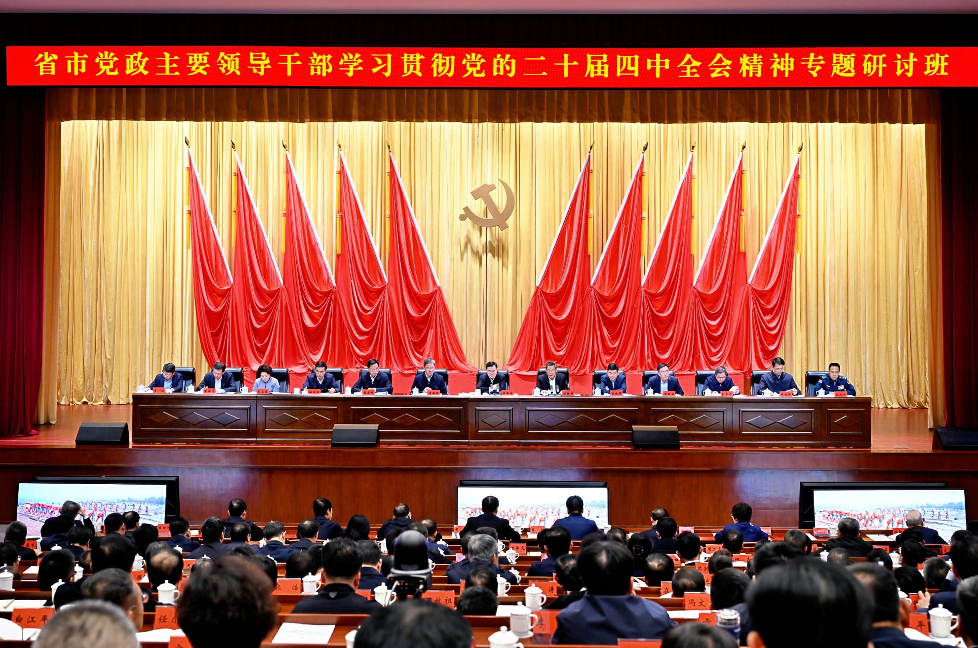 省市党政主要领导干部学习贯彻党的二十届四中全会精神专题研讨班3月17日下午举行辅导报告会。省委书记、省人大常委会主任胡昌升主持并讲话。省委副书记、省长任振鹤作辅导报告。